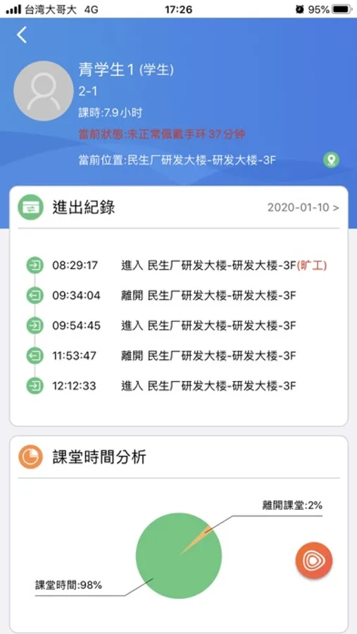 青空间是管理学生进出状况的智能学校应用,能够快速统合学生的目前状况,让班主任了解学生目前位置以及安全性,是创造学生安全空间的智慧应用。