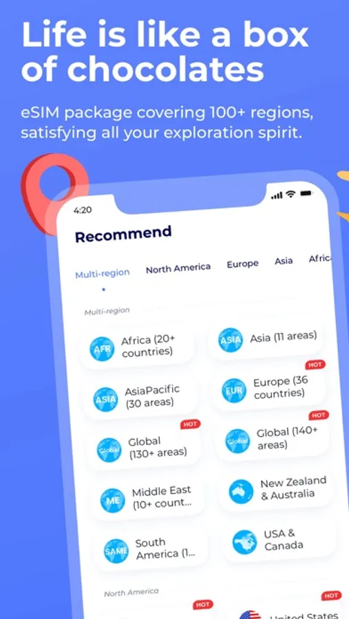 Say goodbye to expensive roaming fees, standing in line at mobile shops, and carrying pocket wifi. Our data plans are affordable, with clear and fair prices, no hidden fees, and a pay-as-you-go option. We offer global coverage and a seamless internet connection in practically every corner of the world. You can purchase internet data for either one country or the whole continent, with no additional SIM cards needed. You can store multiple eSIMs on one device and switch seamlessly between plans and your current provider. We have no contracts or long-term commitments, and you can cancel anytime.