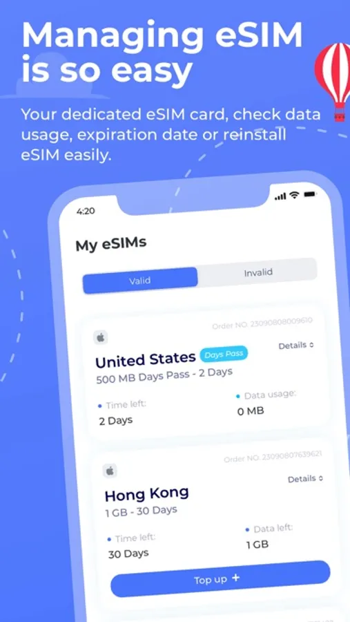 Our data plans are cost-effective, flexible, and convenient for both travel and business. You can enjoy extreme savings on international calls with free roaming anywhere, and stay online 24/7 with our mobile data plans. Our eSIM data plans are perfect for affordable and convenient business trips. You can store multiple eSIMs on one device and switch plans whenever you want.