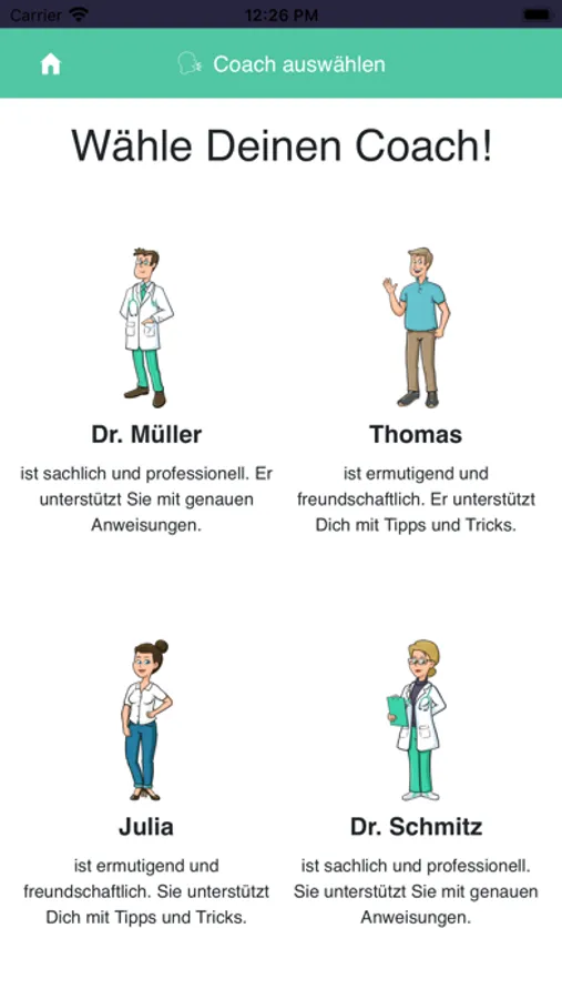 5. Coach-Auswahl: Wähle einen Coach der dich durch die App begleitet!