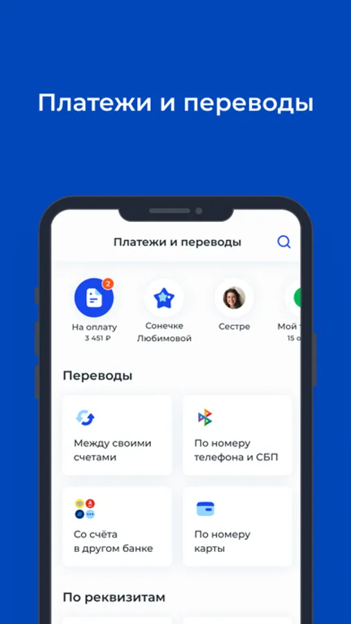 • Переводы по номеру телефона в другие банки по Системе быстрых платежей (СБП).