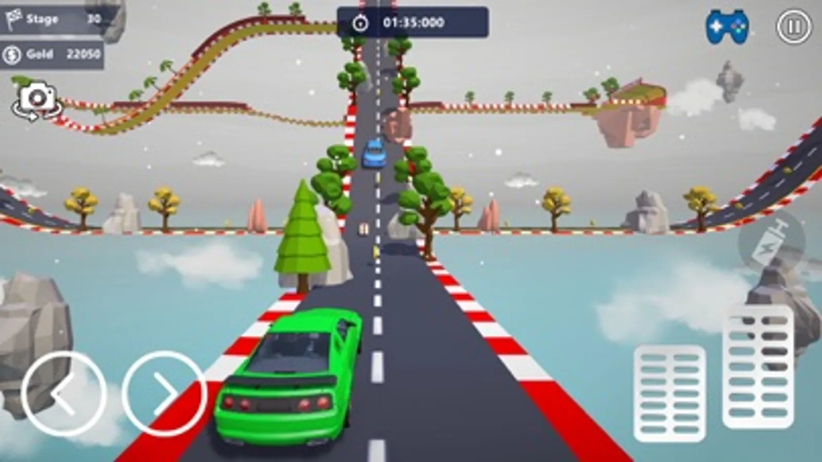 - Use the button to go left or right. You can also choose the steering wheel and pedal for a more realistic and dynamic driving experience.