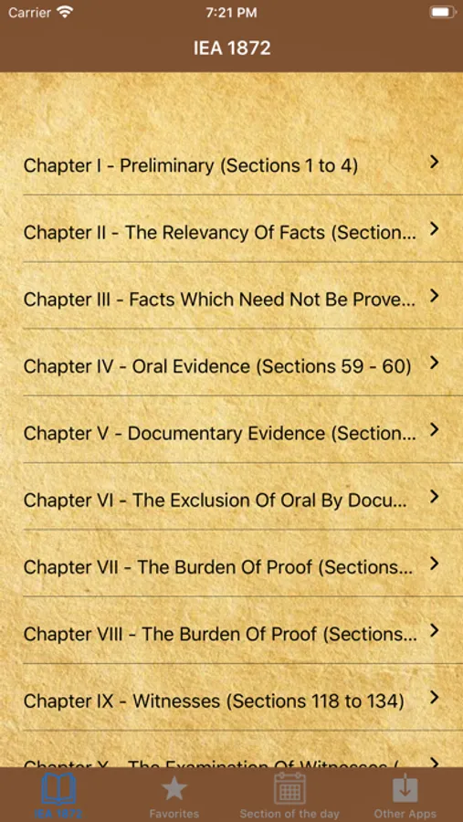 The Indian Evidence Act, identified as Act no. 1 of 1872, and called the Indian Evidence Act, 1872, has eleven chapters and 167 sections, and came into force 1 September 1872. At that time, India was a part of the British Empire. Over a period of more than 125 years since its enactment, the Indian Evidence Act has basically retained its original form except certain amendments from time to time.