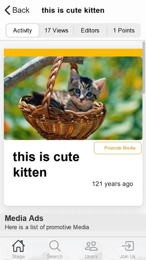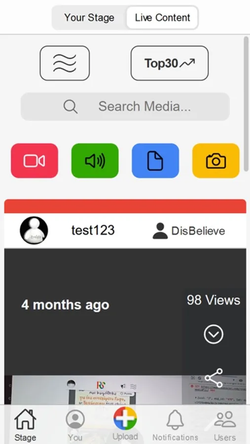 Share Audios, Texts, Videos, and Pictures as Media. Invite others to Listen, Read, View, or Vote for them. Make a Review on a Media.