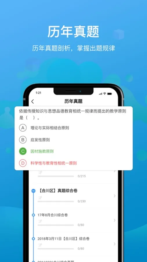 内含大量教师公招考试真题和高质量模拟题,同时以专项练习,模考大赛,历年真题,冲刺密卷,随机练习等多角度呈现,满足考生多样性练习需求