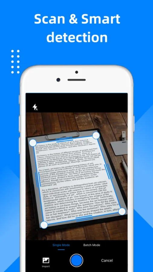 DR PDF Scanner is a powerful and easy-to-use scanner app that will turn your mobile into a scanner. You can easily scan various documents, notes, and certificates and share any document in PDF or JPG format to various platforms via WeChat, email, etc. Download DR PDF Scanner and enjoy one-click scanning, smart detection and HD effect!
