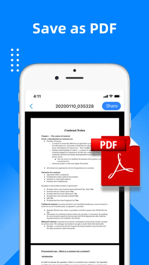 When you go out for a meeting, DR PDF Scanner can help you scan contracts and share them in real time. In the spare time, you can use PDF Scanner to scan class notes and view at any time. When traveling, you can use PDF Scanner to scan ID cards, passports, and driving licenses in advance in case of emergency. Enjoy and manage your portable documents now!