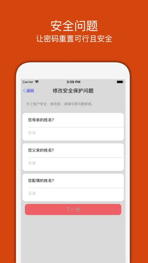 5、支持重置密码,不用担心忘记密码,通过验证安全问题和验证码的校验,确保安全后可对密码进行重置。