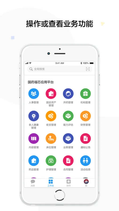解决现有各类型机构所需的,机构养老,社区养老,居家养老类型的解决方案。实现运营机构,无纸化,沟通无缝化,实时化。