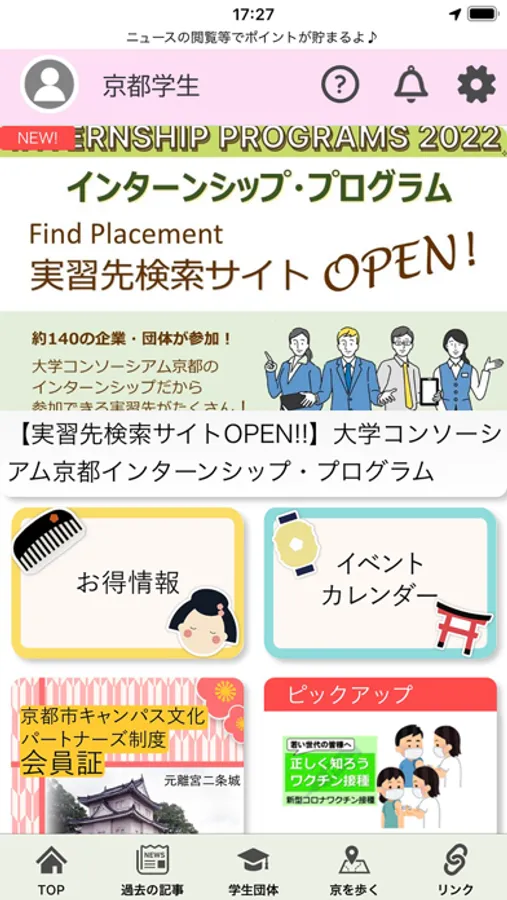 ・京都市、大学コンソーシアム京都、地域企業などが発信する、学びの充実につながる、学生向けニュースを配信します。