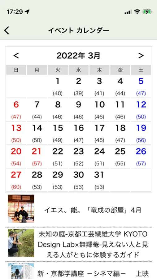 ・京都ならではの学生向けイベント情報をカレンダー形式で配信します。