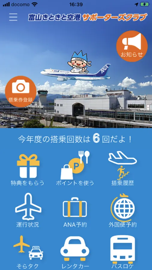 「富山きときと空港サポーターズクラブ」のアプリです。本クラブへの入会手続きをはじめ、会員特典のプレゼント、各種キャンペーン情報等をお届けします。富山きときと空港を便利にご利用いただけます。
