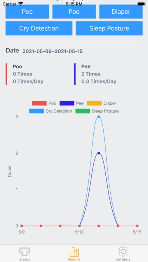 3. Automatic recording the time and frequency of your baby excretion and times for diaper replacement for potty training. Data management for health care in cloud for tracking at anytime and anywhere.