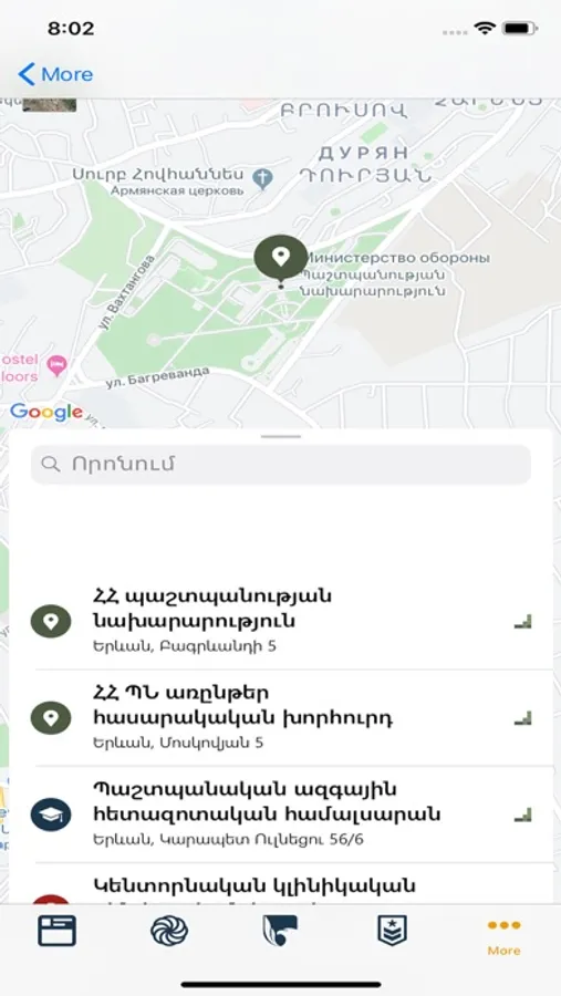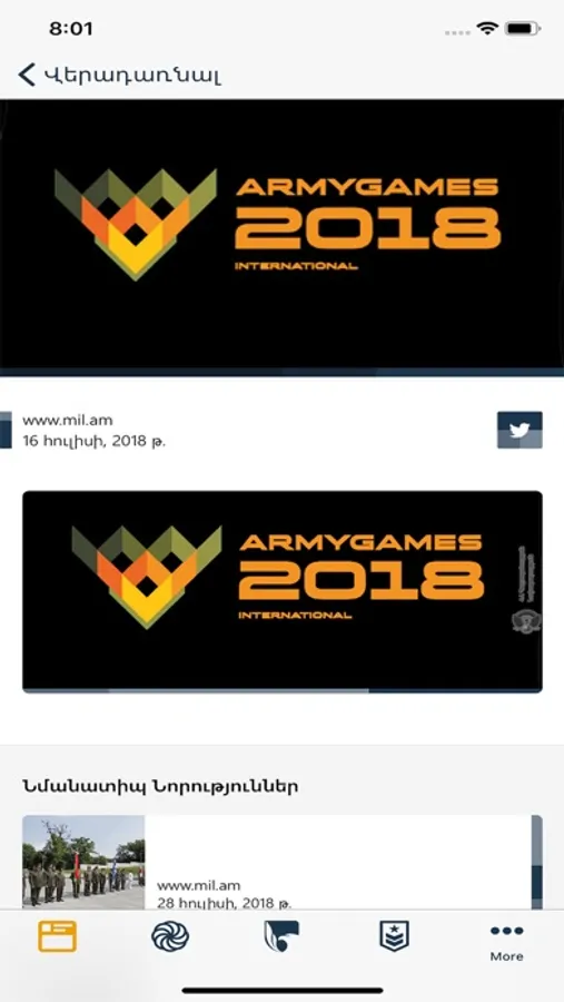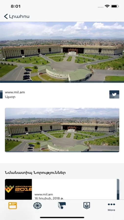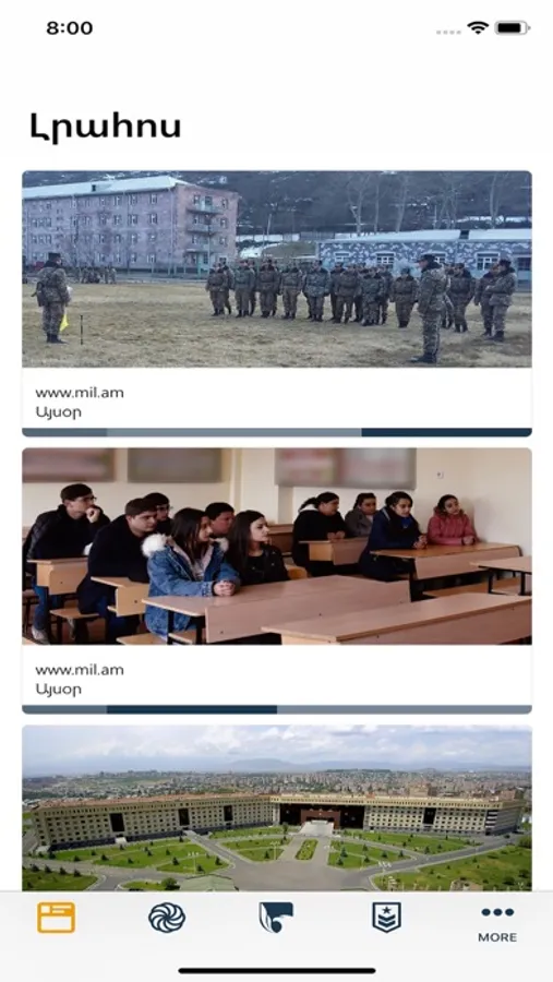 Keep up to date with all the latest news from www.mil.am and www.hayzinvor.am, view videos from the official YouTube channel. Get Social information in Military Services section and track Vacancies and Supply tenders in Announcements Section. Get the locations and contacts information in an interactive map.