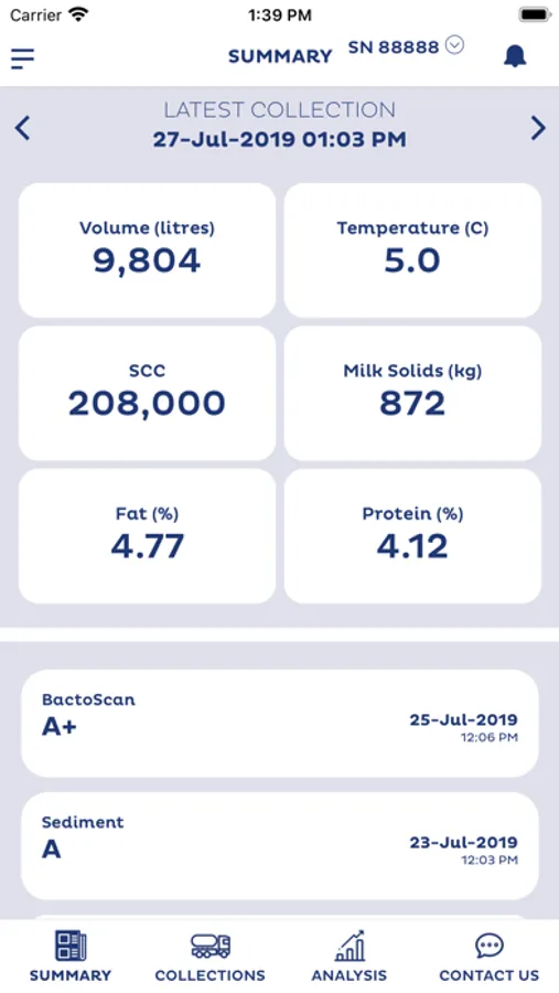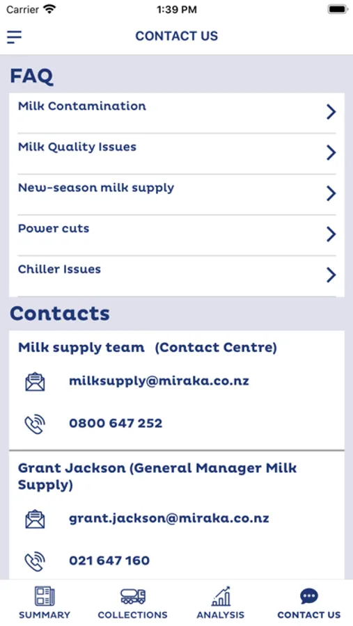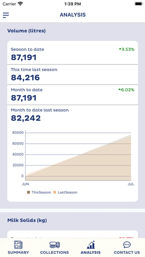 This app offers insights and analysis into milk collection results and allows Access of up-to-date milk production and milk quality data at any time. Analyse and drill deeper into each of the quality points with powerful full season to season comparison. Useful FAQ, contact, and alert notifications of new collection and result data.