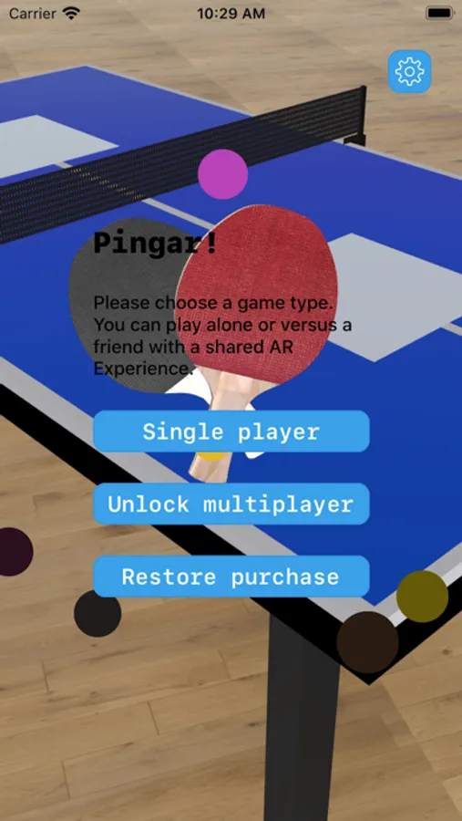 In singleplayer mode, the player faces of against a bot. In multiplayer mode you can play against someone else using the Pingar app in your location. Both players will see the same virtual scene in the same place in the real world.