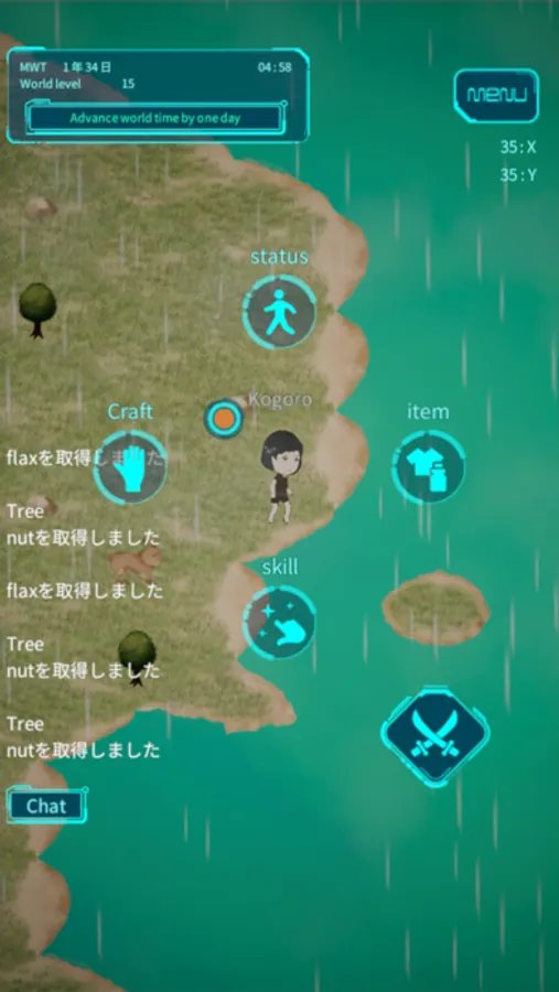 Numerous skills including fighting, crafting, gathering, swimming, eating, etc.