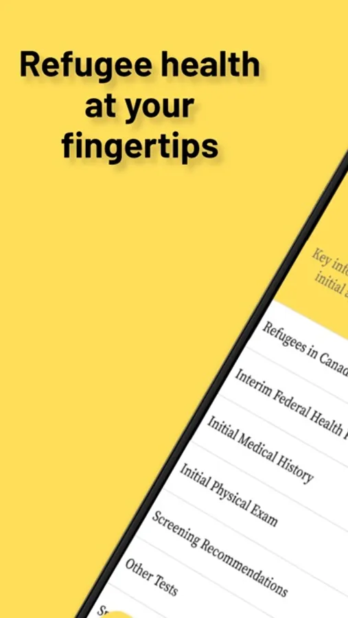 The clinical information contained in this application is a consensus from the physician group working at the Calgary Refugee Health Program, and is based on years of experience treating most of the refugees and refugee claimants in Calgary. It is meant to be used as a clinical resource to guide Canadian physicians (and other healthcare practitioners) through the initial screening and management of newly arrived refugees and refugee claimants.