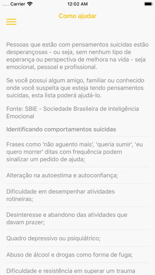 Importante frisar que o app não substitui a ajuda médica e muito menos de um profissional especializado.