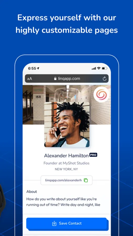 Business cards are too easily forgotten, lost, or unused. With Linq there’s no awkward exchanges when you meet someone new—Get connected. Stay connected.