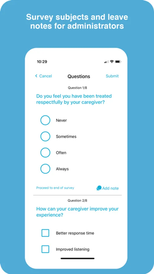 * Add notes – Type a note for each survey response to aid with service recovery