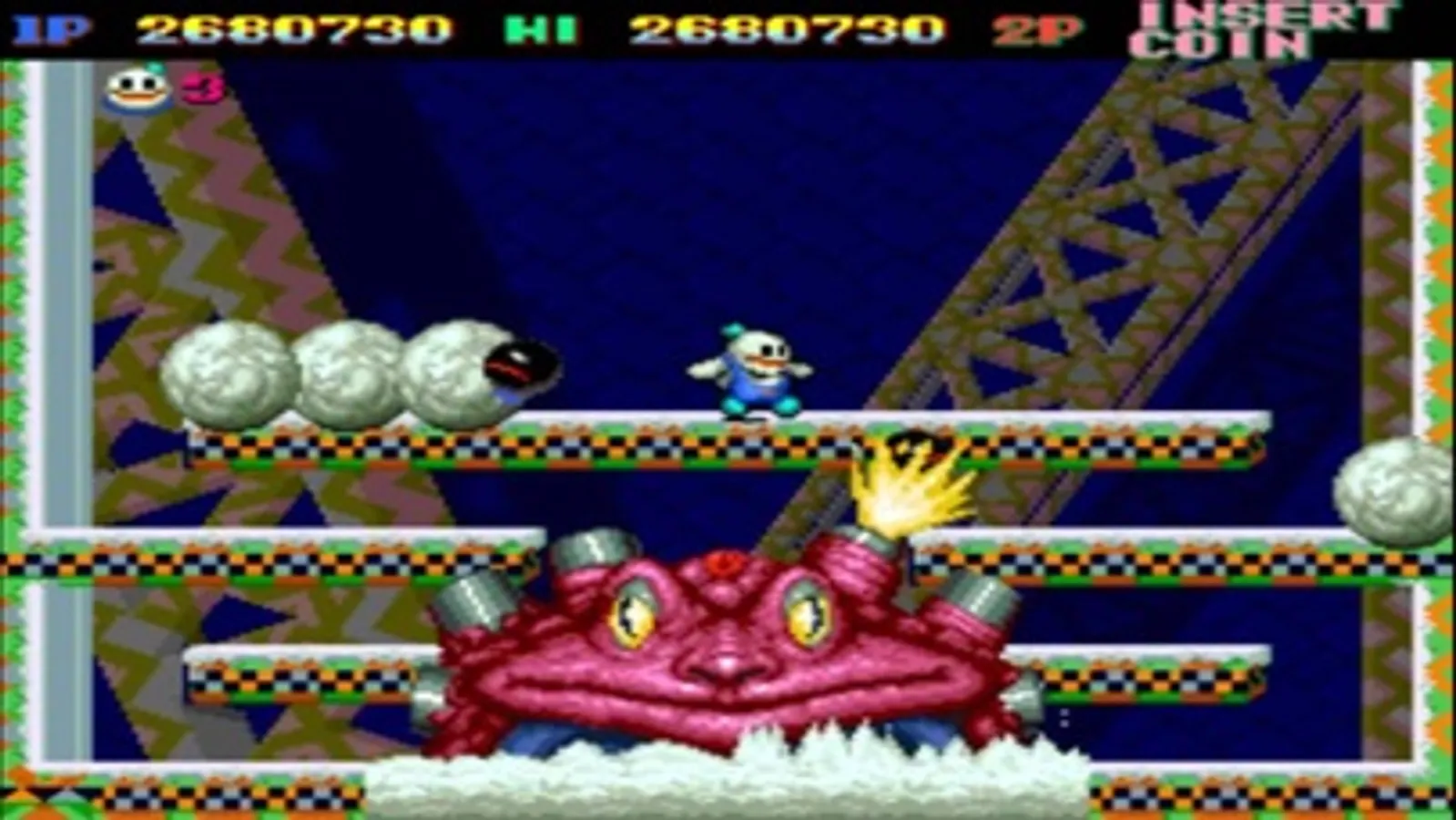 You can kick snowballs and blow off enemies to defeat them and earn sushi, potions and extra points.