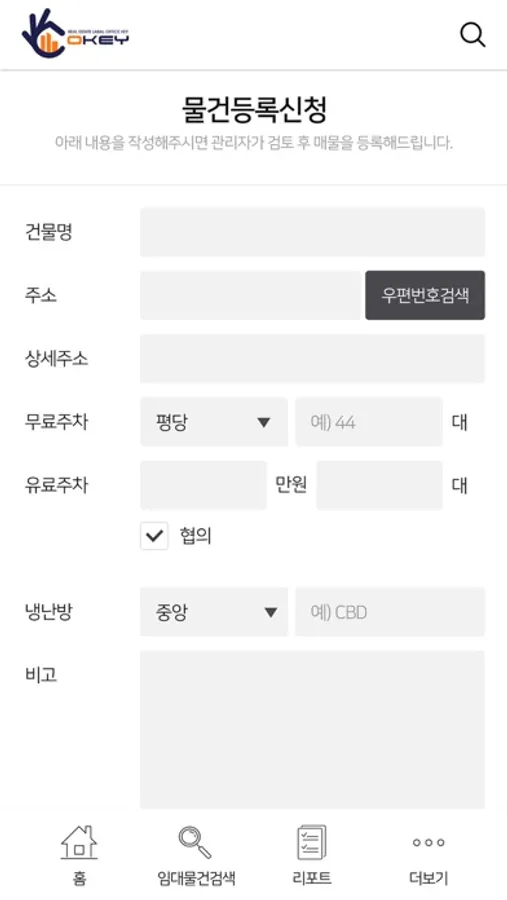 건물명, 주소, 건물 규모, 주차공간 등 상업용 부동산의 기본정보
