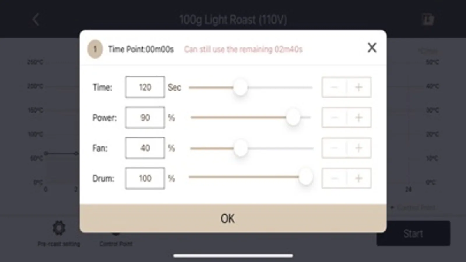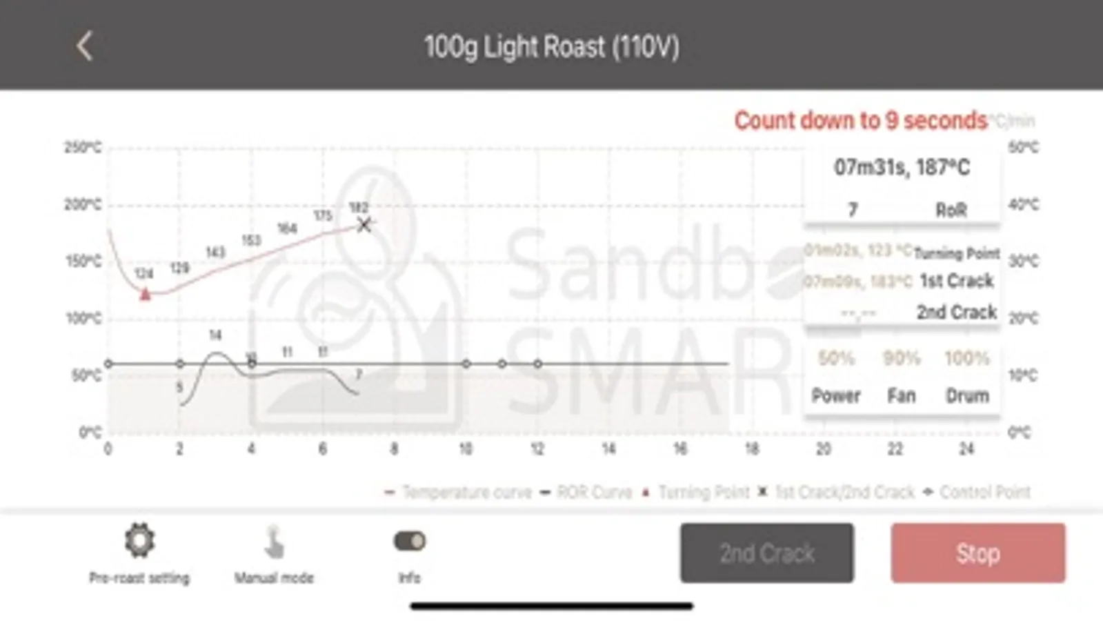 The smart home coffee bean roaster Sandbox Smart R1 connects smartphones with Bluetooth. The app comes with pre-programmed roast settings to make different roast levels: Light/Medium/Dark Roast for users to utilize and also manual settings to adjust roast parameters: Heat/Fan-speed/Drum Rotations Control for users to enjoy the fun of roasting their own exclusive flavors.