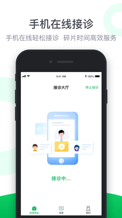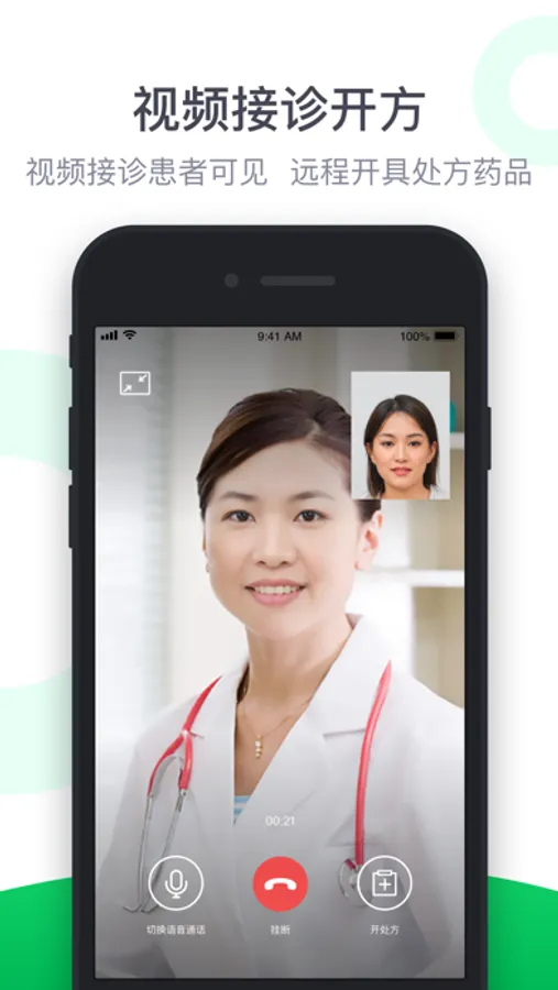 到,高效管理患者;视频、图文多种形式接诊,与患者零距离沟通,帮助医生打造一个私人移动诊所;