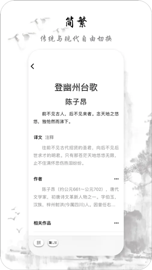 这是一款拯救文艺退化症的古诗词App,帮你秒懂古诗词。在学习诗词时可阅读数三十万首诗词,涵盖各类诗词场景,帮助你全方位掌握诗词的注解和译文。
