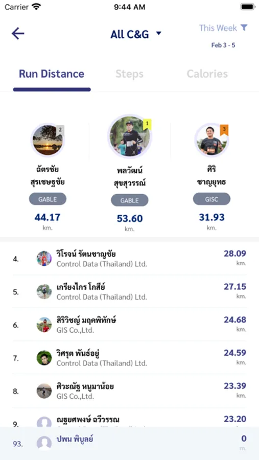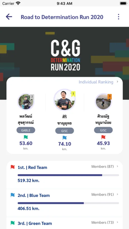 • Show Race Result, Distance, Steps, and Calories by leaderboard for top 100 data accumulated.