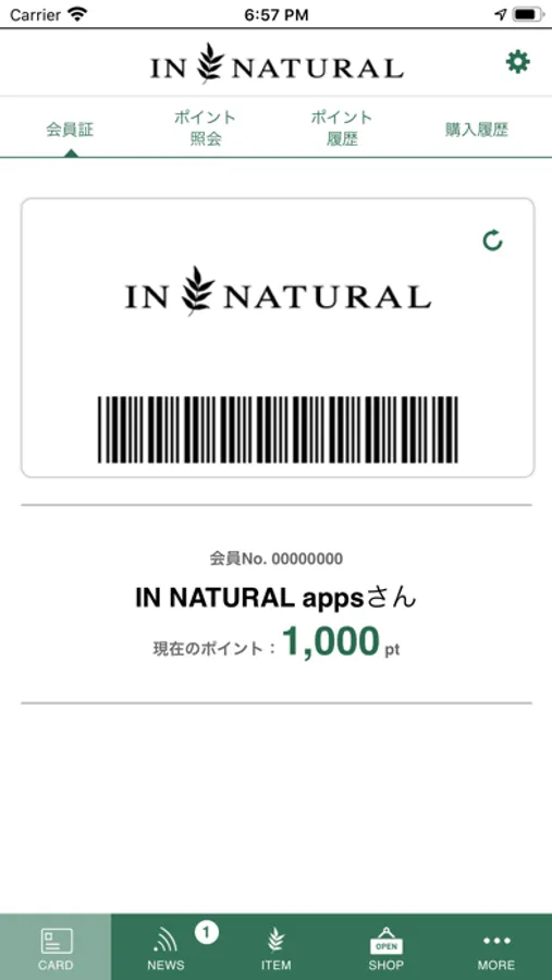 「IN NATURAL」アプリは、対象店舗にて会員証としてご利用いただけるだけでなく、最新/お得な情報を受け取ることができます。