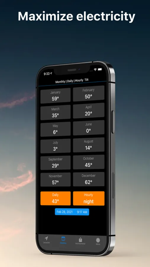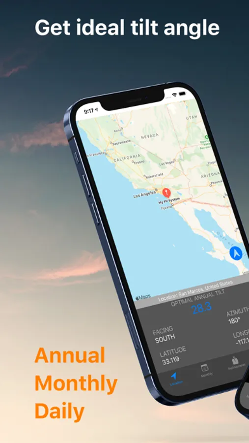 Simple and accurate determination of the optimal PV tilt angle. Make your PV System generates maximum electricity for your desired location. The wrong position of your PV System can cause losses in electricity generation and your project feasibility may be a question.
