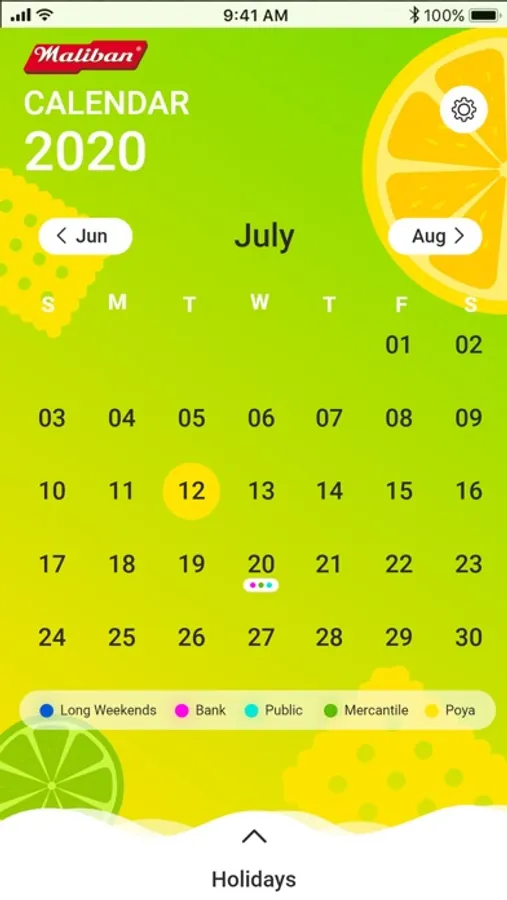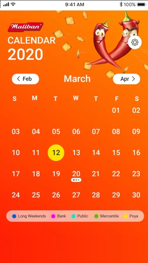 You can move between months by swiping left or right & see the holidays on that month inside the Calendar as well as at the bottom of the calendar in detail. In addition to that Maliban calendar will notify you about the holidays in a week at the beginning of every month using Push Notifications.