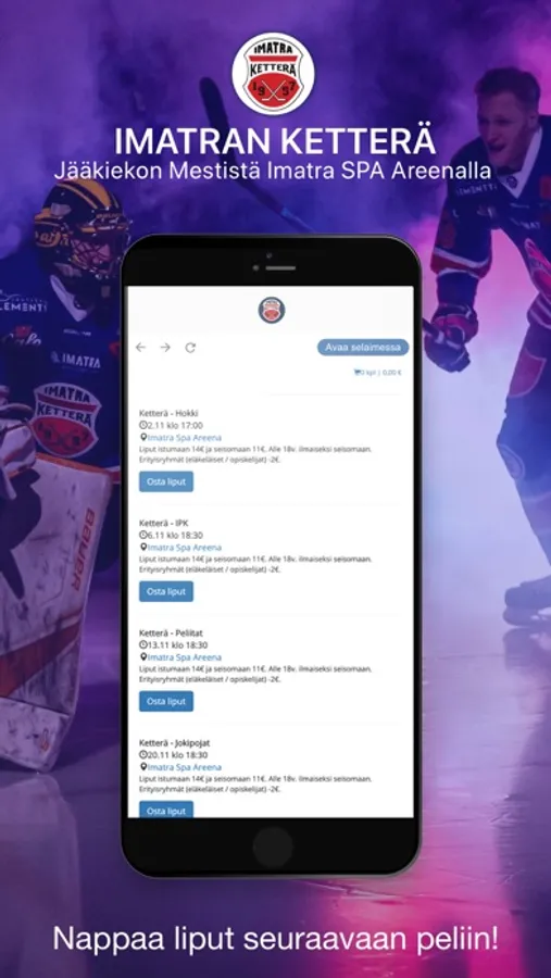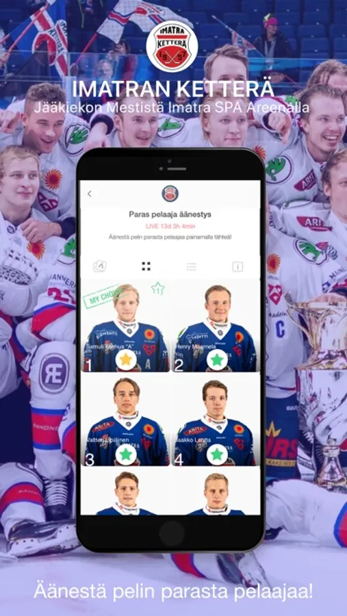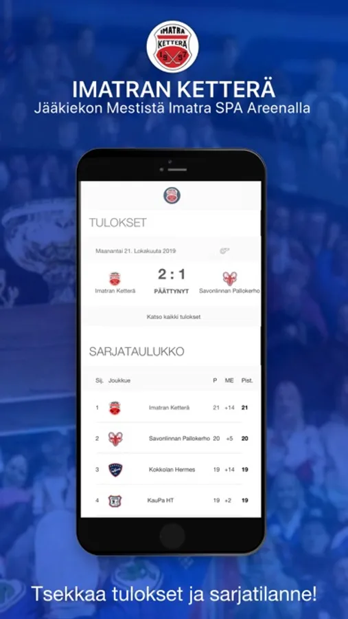 Imatran Ketterä sovellus tarjoaa viimeisimmät uutiset, tilastot, äänestykset ja lippukaupan suoraan puhelimeesi. Lataa sovellus ja nauti Imatran Ketterän peleistä uudella ja hauskalla tavalla!