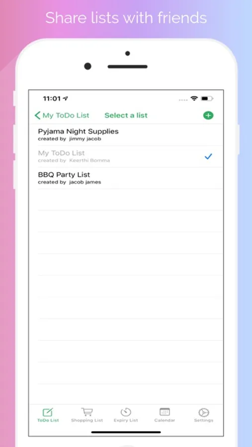 ELists lets you share your lists with your friends and lets you access your data from any iOS device.
