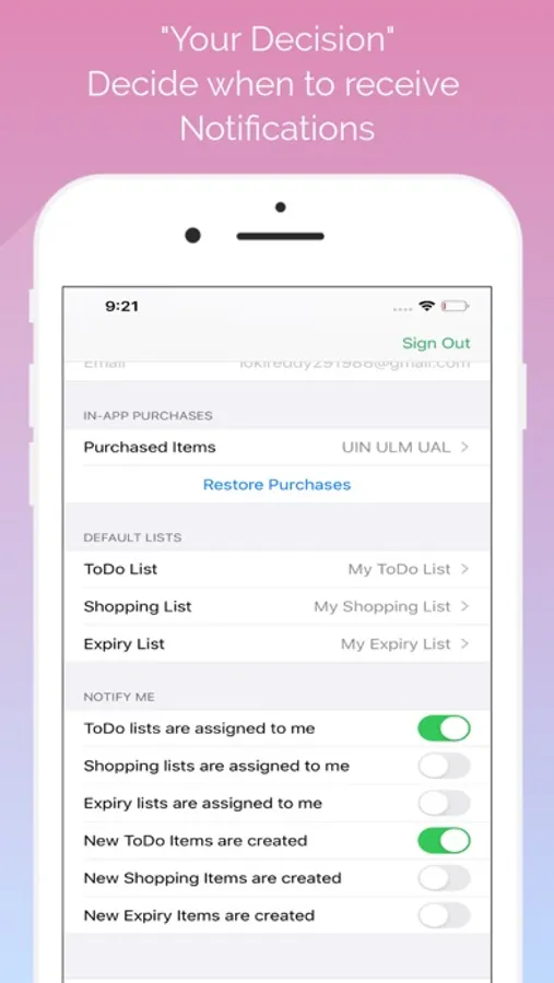 This app offers In-App-Purchases, through which users can share lists to unlimited members. Also, with In-App-Purchases, users can send unlimited instant notifications.