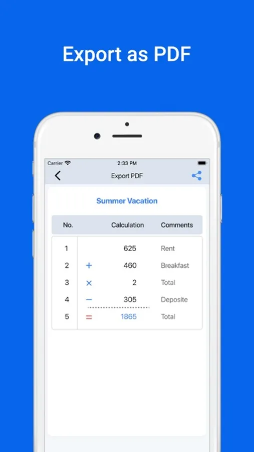 Using Calculator with Notes you can calculate everything, so now you can manage your financial stuff easily. Here you can easily export saved calculations to PDF file and share with others.