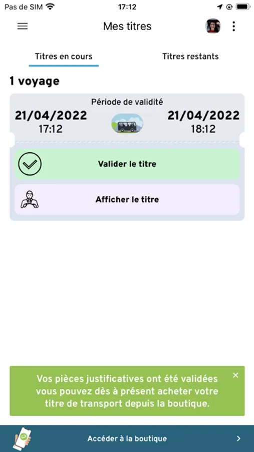 Tickets : Achetez directement votre titre de transport sur l’appli, constituez votre portefeuille de titres depuis la rubrique ticket pour faciliter vos achats de titres et vos déplacements. Validez votre ticket sur l’appli dès votre montée dans le bus.