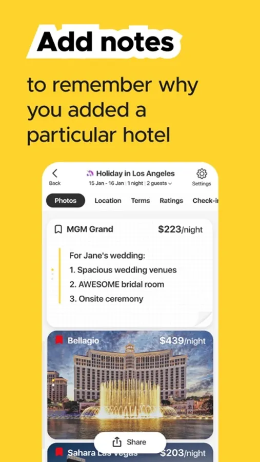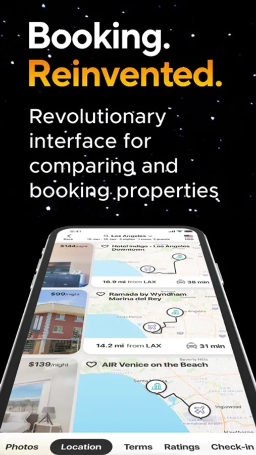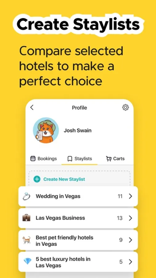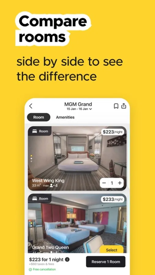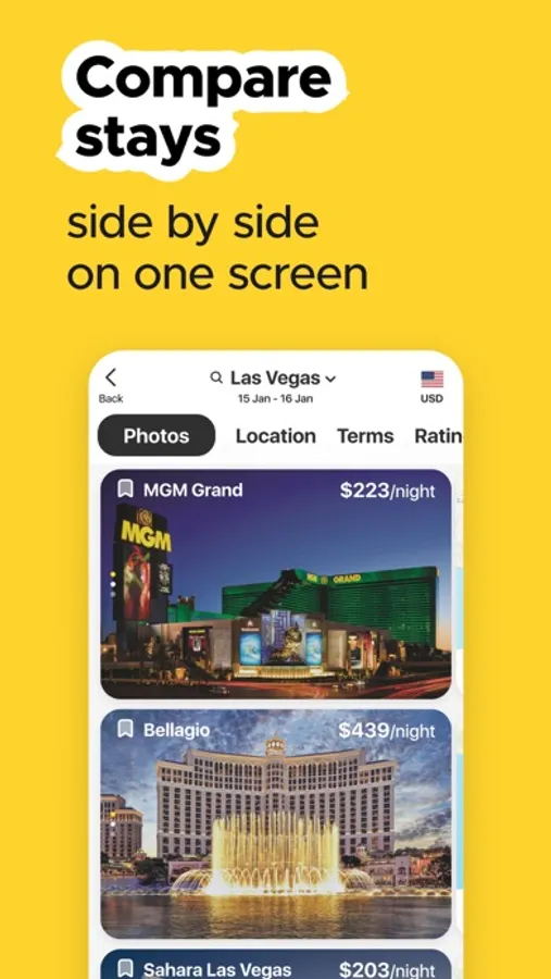 Meet the first booking app that allows you to compare hotels side by side, book properties as easy as online shopping, collaborate with friends while planning a trip, and even earn rewards when others book based on your recommendations.