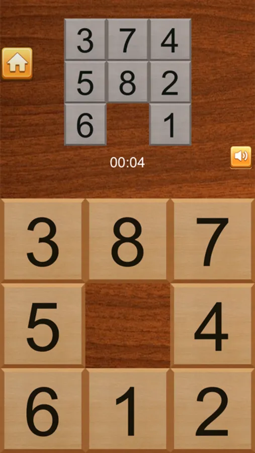 The basic form is a 3 by 3 grid. There are 15 tiles and the 16th place is empty. Before play begins the tiles are randomly scrambled by sliding to any starting position. Tap and move the wood number tiles. The object of the game is then to unscramble the tiles to get them into consecutive order.