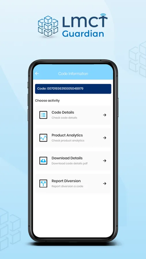 The LMCT Guardian is a customized supply-chain consignment tracking app for Distribution / LCs / Field Officers / Sales teams. It includes a product tracking dashboard and analytics to give you entire information about a code. With this application, the user can report a diversion of the product as well. This application is powered by PharmaSecure.