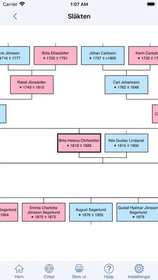 Genom Disgen kan du överföra dina släktdata till appen Släkten och visa dessa data i appen.