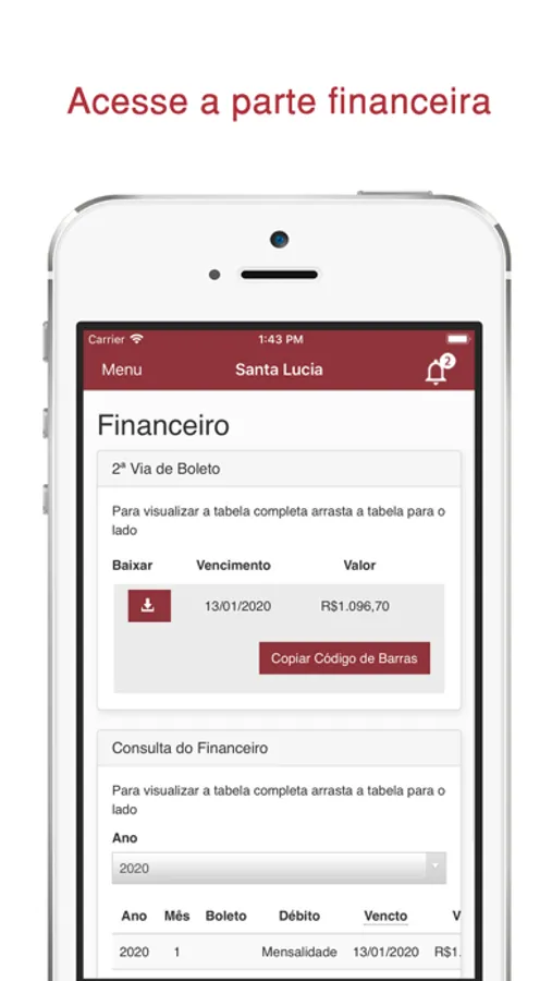 O aluno poderá acessar suas notas e faltas, além de fazer o download de materiais disponibilizados pelos professores, ter acesso a sua página financeira e também a biblioteca da faculdade.