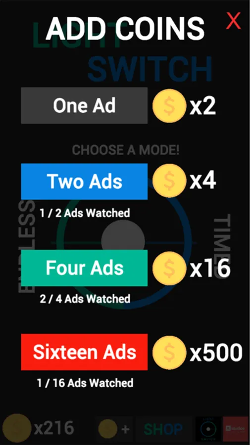 Light Switch is an addictive, arcade game where you, the player, have to score as much points as you can using a green laser and get past as many waves as you can. There are two modes, Endless Mode and Timed Mode.