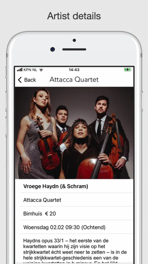 Every two years, the String Quartet Biennale puts the string quartet in the centre of world wide attention in the Amsterdam Muziekgebouw. With over sixty events — concerts and a lively fringe programme of lectures, talks and masterclasses — and thirty string quartets from all over the world, you can immerse yourself completely in string quartet from early morning until late at night. Join us on our journey of tradition and experiment; to the familiar and the unknown.