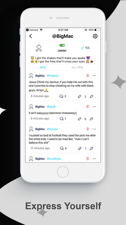 We believe that thought provoking content, whether it be comedic, artistic, or newsworthy, should be promoted and shared regardless of the user’s real life or in-app status and social profile.