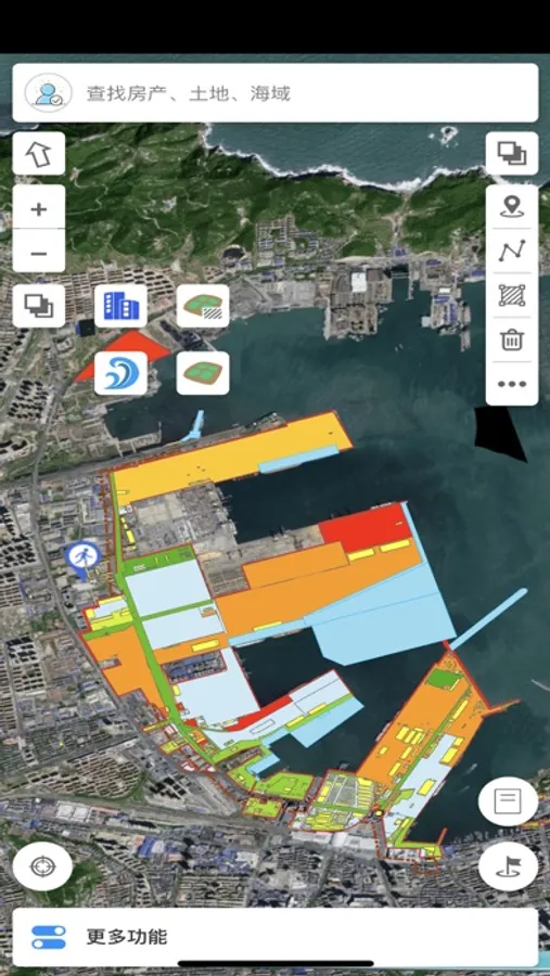 (1)地图及数据查询功能,包括地图查询、土地数据查询、房产数据查询、海域数据查询,使现场作业的业务人员实现手机查询所需房地产海域的相关信息。