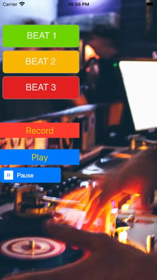 The user presses either "beat 1", "beat 2", or "beat 3", the user can then press the record button and rap or sing along with the beat. After they are done recording they press the record button again to stop recording. The recorded track can then be played back with the play button. The pause button is used to pause the audio.
