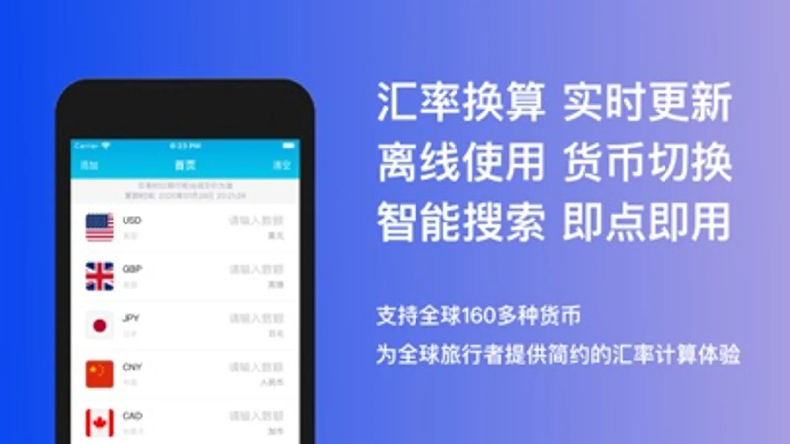 The exchange rate data is updated in time, supporting more than 160 currencies around the world.